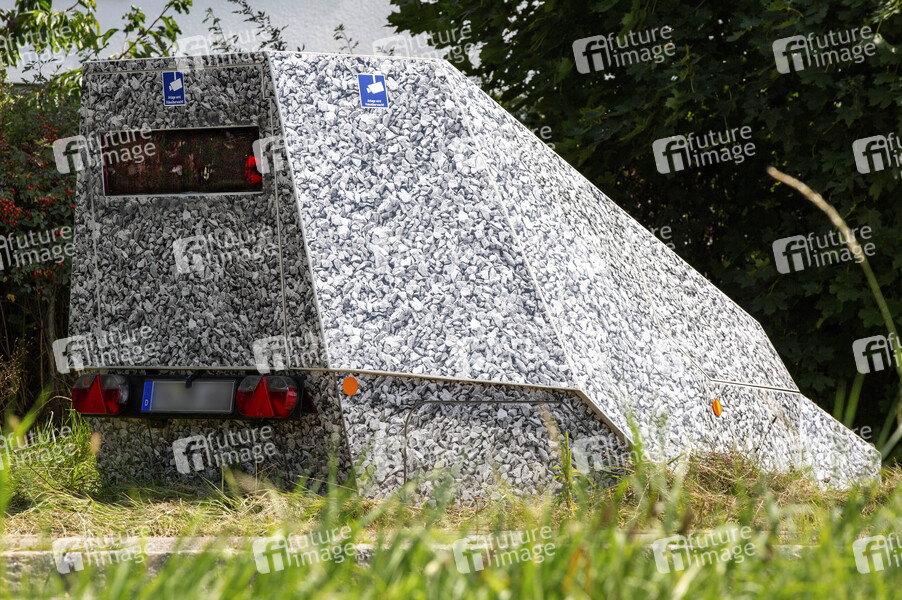 Enforcement-Trailer, Poliscan-Messtechnik, Vision Zero, Vitronic, kugelsicher, automatisches Feuerlöschsystem, Alarmanlage gegen Rammversuche, Alarmanlage gegen Angriffe, Gewicht 1, 3 t, Einfaches Positionieren, stahlgepanzerter Anhänger, neue Blitzer-Generation, Steinoptik, Tarnung, Falldokumentation, Beweisbilder, gezielte Verkehrsüberwachung, Mobiler Blitzer, Radarfalle, mobiles Verkehrsüberwachungsgerät, Schnappschüsse, Bußgeldstelle, Kennzeichenerkennung, Fahrererkennung, Tempo-Sünder, Raser, Rasen, Tarnkappen-Blitzer, stahlgepanzerte Anhänger, Geschwindigkeits-Überwachung, Messgerät, straßen sicherer machen, Klimaschutz, Polizei, Stadt, Ordnungsamt, Landratsamt, Drahtlose Fallübertragung, Vandalismusschutz, kein Personal, Symbolfoto, Symbolbild