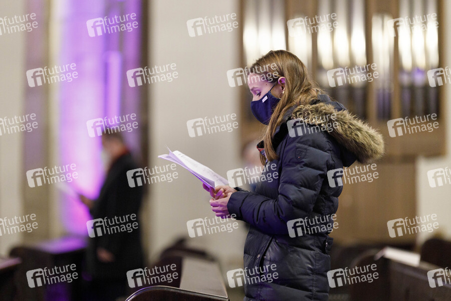 Erzbistum Köln, Messe, Kirche, Gottesdienst, Vesper, ökumenisch, Advent, Vorabend, Singen, Glauben, Predigt, Corona, Kirche, Weihnachtszeit, Religion, Maskenpflicht, Mindestabstand, Coronavirus, Coronakrise, katholisch, Katholiken, evangelisch, Evangelische Kirche, Kirchenlied, Corona-Advent, Gesang, Virus, Infektionsschutz, Infektionszahlen, Religionsfreiheit, Corona-Regeln für Gottestdienste, Symbolbild, Symbolfoto