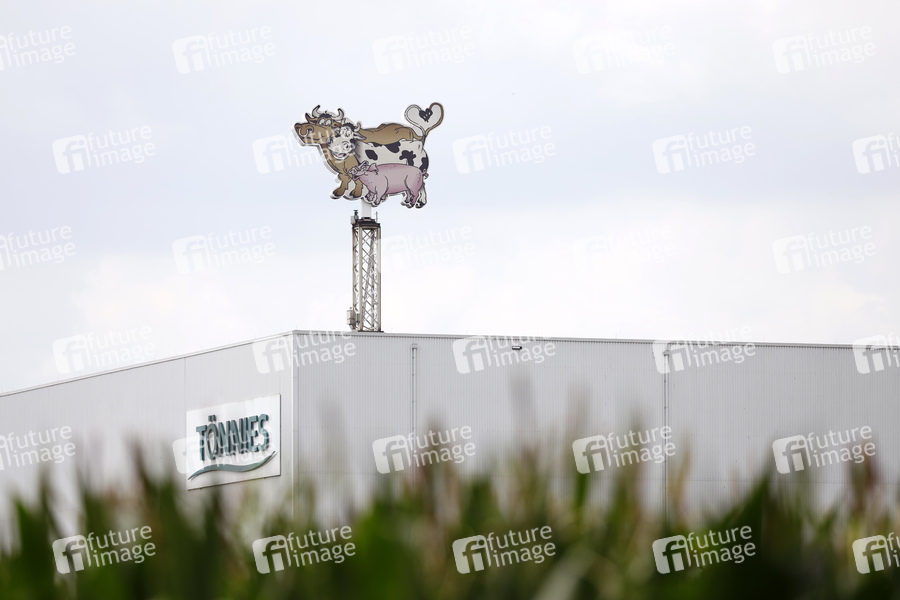 Logo der Lebensmittelfirma Tönnies am Hauptsitz in Rheda-Wiedenbrück. Der Fleisch-Konzern will die Schlacht- und Zerlegefirma Lazar übernehmen. Rheda-Wiedenbrück, 02.08.2020