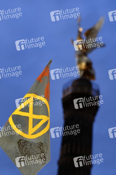 Aktivisten der Klimabewegung 'Extinction Rebellion' blockieren den Großen Stern an der Siegessäule. Berlin, 08.10.2019