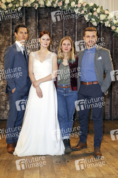 Tim Oliver Schultz, Emilia Schüle, Alicia von Rittberg und Edin Hasanovic beim Fototermin am Set des Kinofilms 'Hallo Again' auf der MS Bleichen. Hamburg, 15.04.2019.