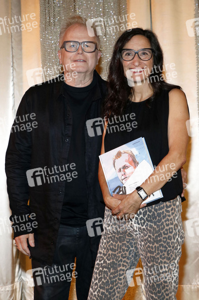Herbert Grönemeyer und Arezu Weitholz bei der Buchpremiere vom Buch 'Zu Mensch: Skizzen und Blicke zurück auf Herbert Grönemeyers Album Mensch' von Arezu Weitholz im Kino International. Berlin, 29.08.2022.