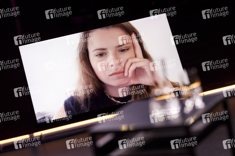 Luisa Neubauer spricht über einen Bildschirm per Webcam bei der lit.Cologne Veranstaltung 'lit.ComingOfAge: Utopia vs. Dystopia - Wie blickt die Generation Z in die Zukunft? Ein Gedankenexperiment' als Stream aus dem Theater am Tanzbrunnen. Die lit.Cologne 2021 findet wegen der Corona-Pandemie als digitales Event mit Streams statt. Köln, 05.06.2021