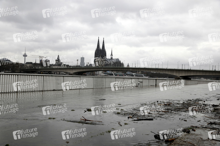 Reinhochwasser, Rheinpegel, Fluss, Rhein, Pegelstand, Pegel, Hochwasser, Pegelmarke, Hochwassermarke, Hochwasserwelle, Scheitelpunkt, Rhein-Pegel, Flussbett, Flut, Schifffahrt, Hochwasserschutz, Wasserstand, Mittelwasser, Tauwetter, Rheinschifffahrt, Rheinufer, Rhein-Ufer, Hochwasserschutzzentrale, Hochwasserwelle, Pegel-Nullpunkt, Hochwasserlage, Hochwassermeldedienst, Hochwasserinformationsdienst, Wasserstände, Pegelstände, Wetterlage, ansteigendes Wasser, steigender Pegel, unter Wasser, überflutet, Rheinufer, Schmelzwasser, Wetter, Scheitelpunkt, kritische Marke, Hochwassermarke, Kölner Dom, Deutz, Symbolbild, Symbolfoto