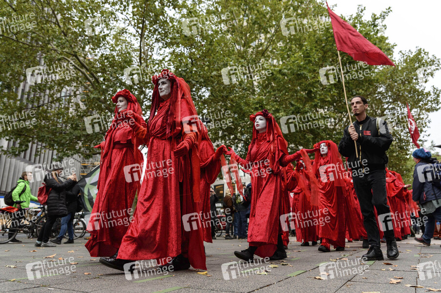 The Red Rebel Brigade der Umweltschutzgruppe Extinction Rebellion auf den Kurfürstendamm. Berlin, 09.10.2019