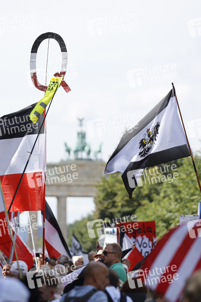 Im Bild die Demo vor der russischen Botschaft. Demonstranten verschiedener Gruppierungen wie etwa der Initiative Querdenken 711 protestierten mit einer Großdemonstration in Berlin gegen die bestehenden Maßnahmen zur Eindämmung der Corona-Pandemie. Wegen Nichteinhaltung der polizeilichen Auflagen wurde die Demonstration durch die Polizei beendet. Es gab Rangeleien und Festnahmen. Berlin, 29.08.2020
