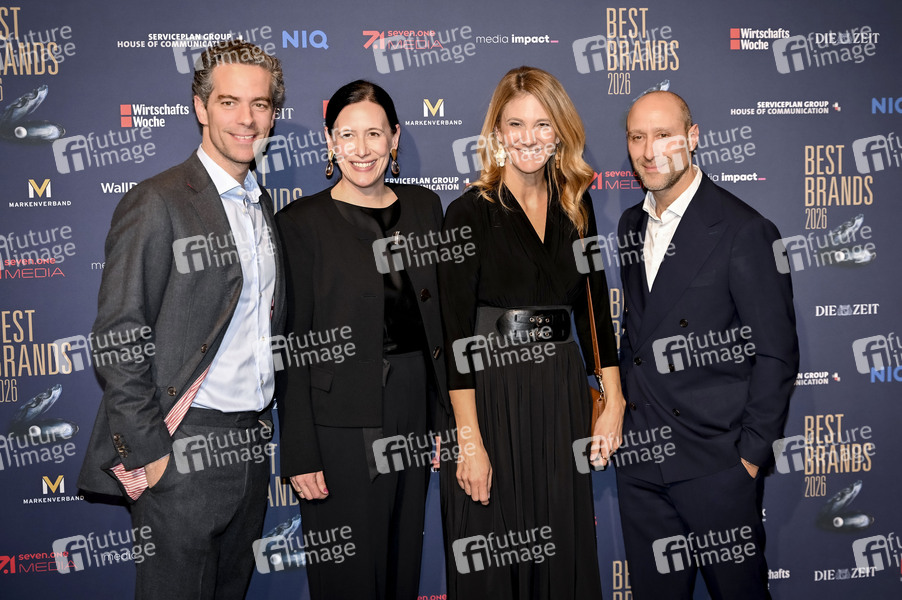 Benedikt Faerber, Maike Abel, Susann Schramm und Giuseppe Fiordispina bei der 23. Verleihung der Best Brands Awards 2026 im Hotel Bayerischer Hof. München, 25.02.2026