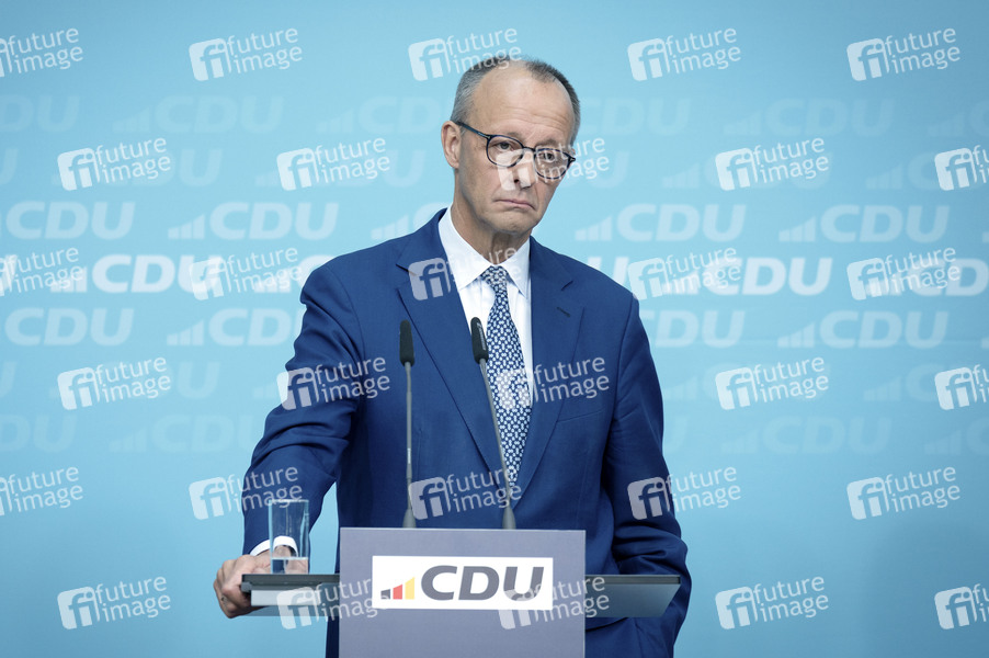 Friedrich Merz bei der Pressekonferenz zu den Ergebnissen der Präsidiumsklausur der CDU im Konrad-Adenauer-Haus. Berlin, 20.10.2025