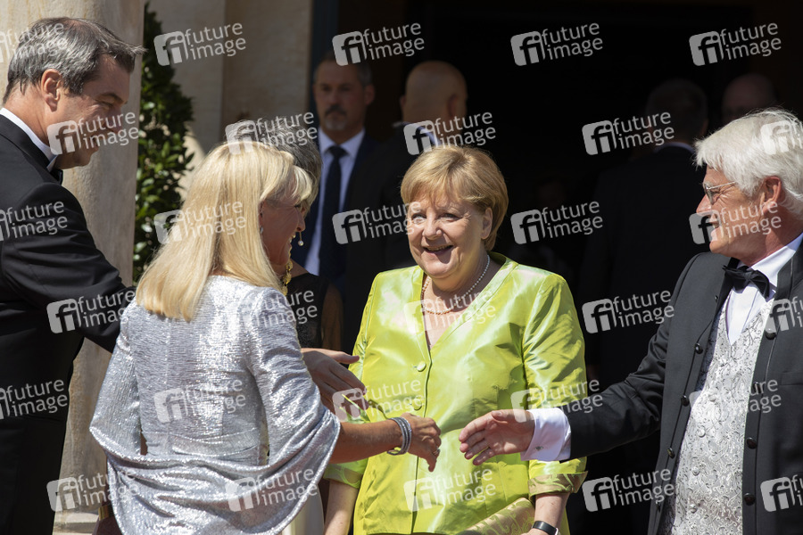 Markus Söder mit Ehefrau Karin Söder, Angela Merkel und Thomas Erbe bei der Eröffnung der Richard-Wagner-Festspiele 2019 mit der Premiere der Oper 'Tannhäuser' im Bayreuther Festspielhaus. Bayreuth, 25.07.2019