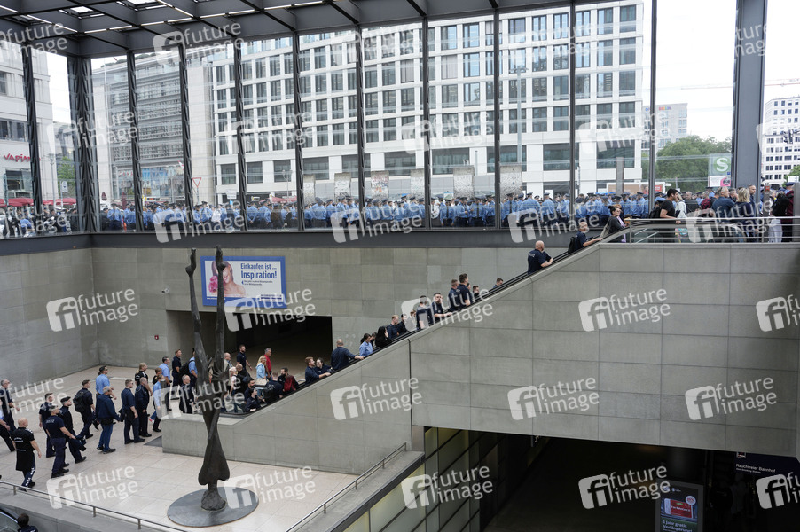 Polizisten in Uniform beim Schweigemarsch für den ermordeten Mannheimer Polizisten Rouven L. vom Potsdamer Platz zur Landesvertretung Baden-Württemberg. Berlin, 07.06.2024