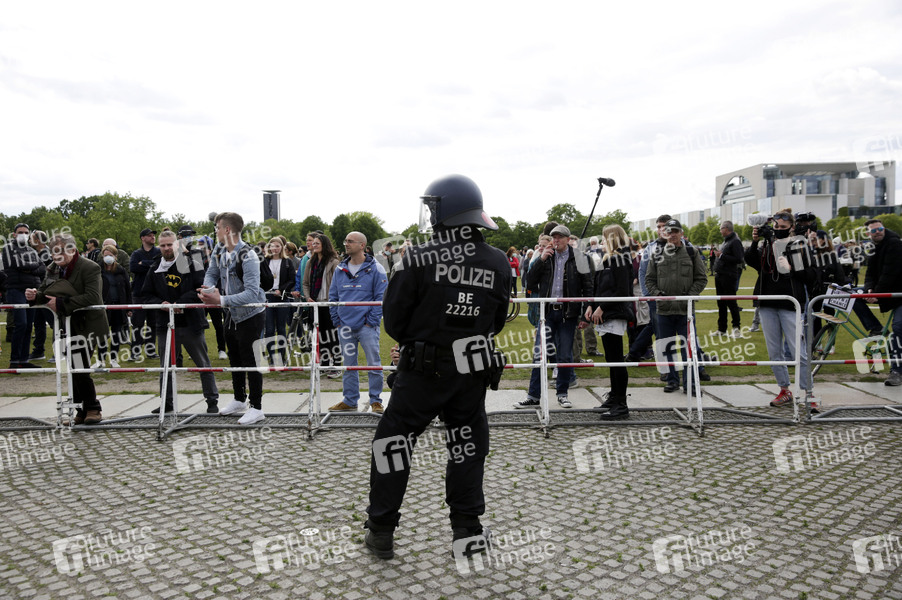 Vor dem Reichstagsgebäude demonstrieren Anhänger der 'Hygienedemo' gegen die Coronamaßnahmen der Bundesregierung. Berlin, 16.05.2020