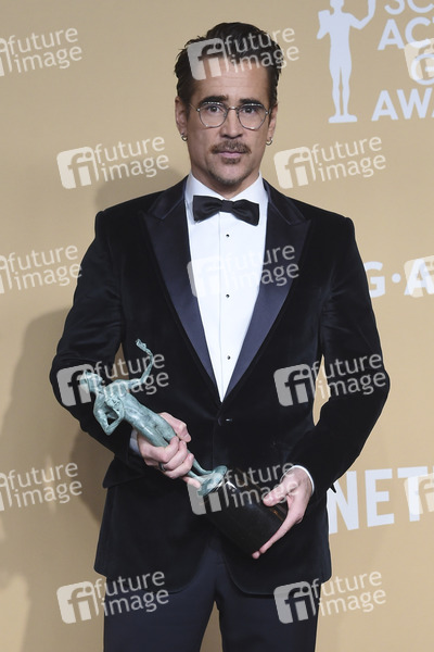 Colin Farrell mit dem Preis für den besten Hauptdarsteller in der Mini-Serie 'The Penguin' beim Preisträger-Photocall der 31. Screen Actors Guild Awards 2025 im Shrine Auditorium and Expo Hall. Los Angeles, 23.02.2025