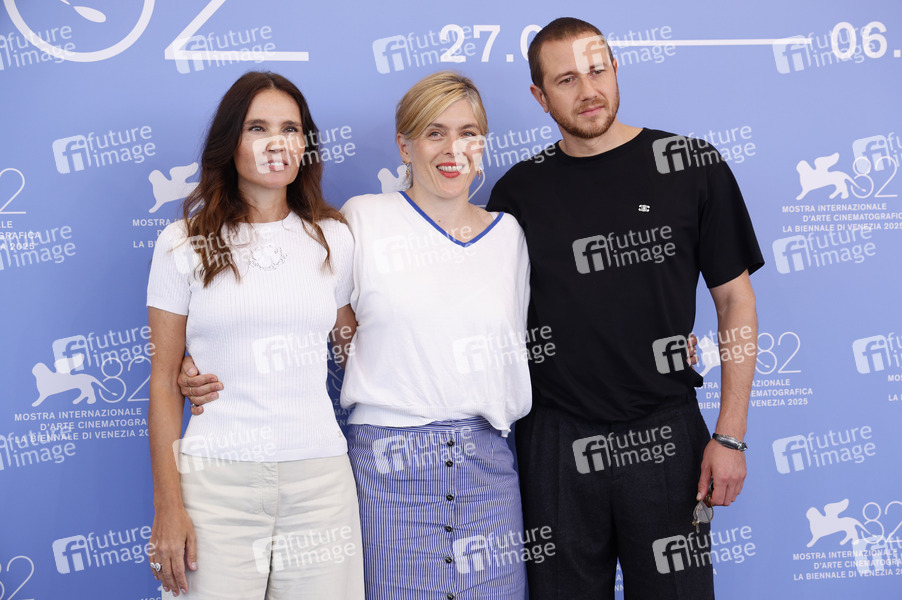Virginie Ledoyen, Valerie Donzelli und Bastien Bouillon beim Photocall zum Kinofilm 'A pied d'oeuvre' auf der Biennale di Venezia 2025 / 82. Internationale Filmfestspiele von Venedig im Palazzo del Casino. Venedig, 29.08.2025