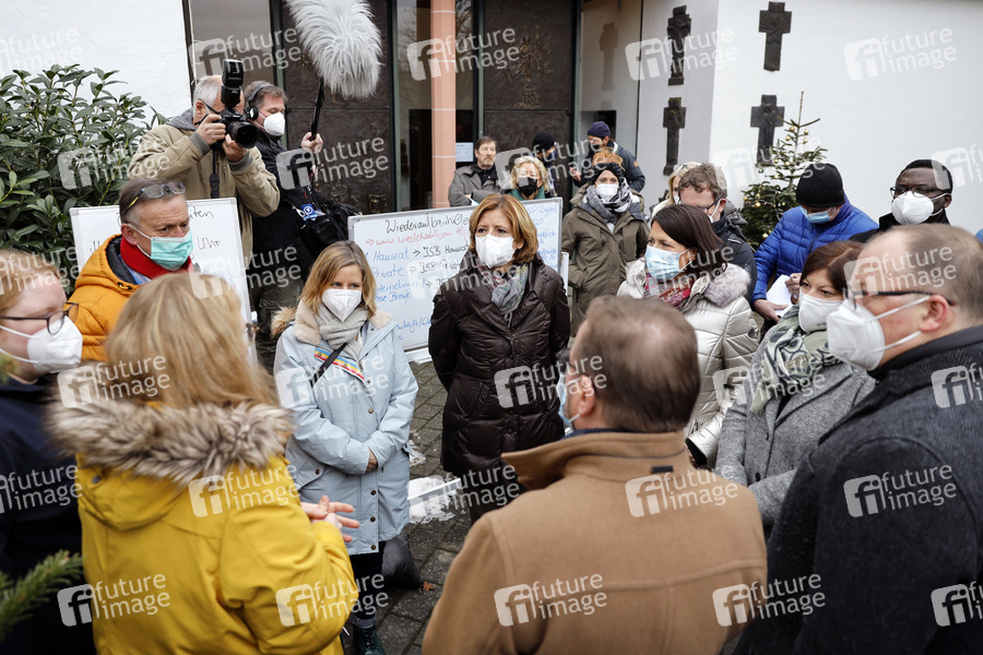 Katrin Eder, Malu Dreyer und Daniela Schmitt besuchen sechs Monate nach der Jahrhundertflut das Ahrtal, um Bestandsaufnahme in der Ortsgemeinde Schuld zu machen. Schuld, 12.01.2022