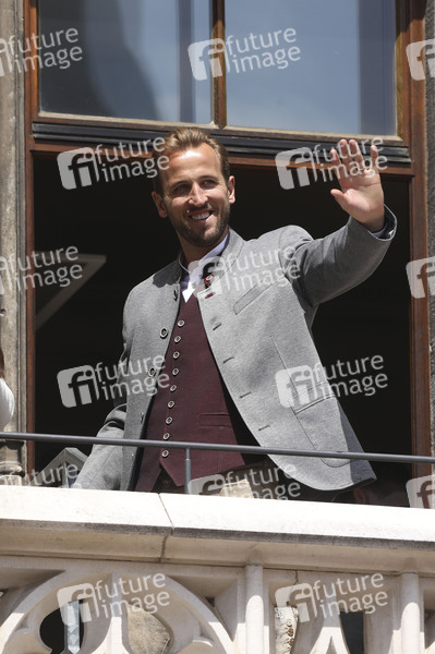 Harry Kane bei der Meisterfeier des FC Bayern München auf dem Balkon des Rathauses am Marienplatz. München, 18.05.2025
