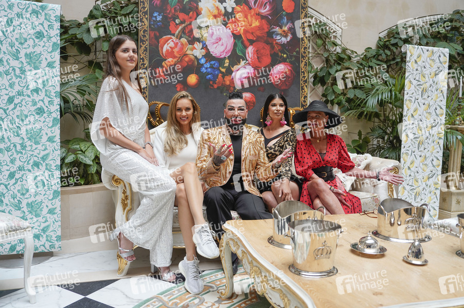 Leni Summer, Franziska Czurratis, Harald Glööckler, Micaela Schäfer und Barbara Engel bei der Präsentation der neuen Möbel- und Interior-Linien sowie Tapeten Kollektionen 'Pompöös Provence' im Hotel Adlon. Berlin, 19.06.2024