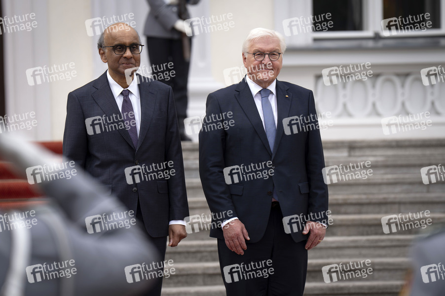 Tharman Shanmugaratnam und Frank-Walter Steinmeier beim Empfang des Präsidenten von Singapur mit militärischen Ehren im Schloss Bellevue. Berlin, 04.06.2025