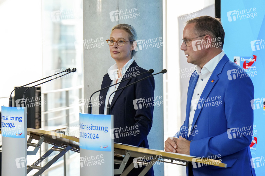 Alice Weidel und Tino Chrupalla bei der Fraktionssitzung der AfD-Bundestagsfraktion im Reichstagsgebäude. Berlin, 08.09.2024