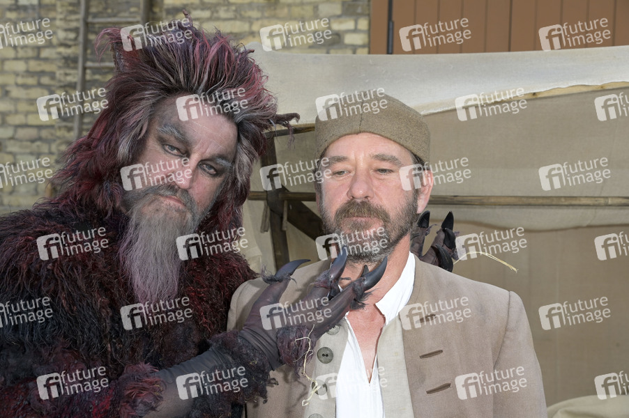 Detlev Buck und Peter Schneider beim Foto- und Pressetermin am Set von 'Das Märchen von der silbernen Brücke' aus der ARD-Reihe 'Sechs auf einen Streich' auf dem Gutshof Britz. Berlin, 23.07.2024