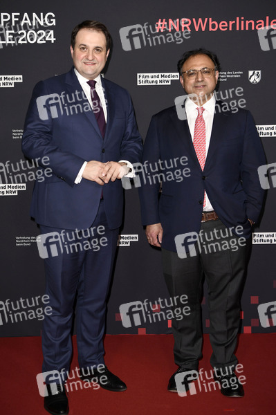 Nathanael Liminski und Walid Nakschbandi beim 21. NRW Empfang des Landes NRW und der Film- und Medienstiftung NRW im Rahmen der Berlinale 2024 in der Vertretung des Landes Nordrhein-Westfalen. Berlin, 18.02.2024
