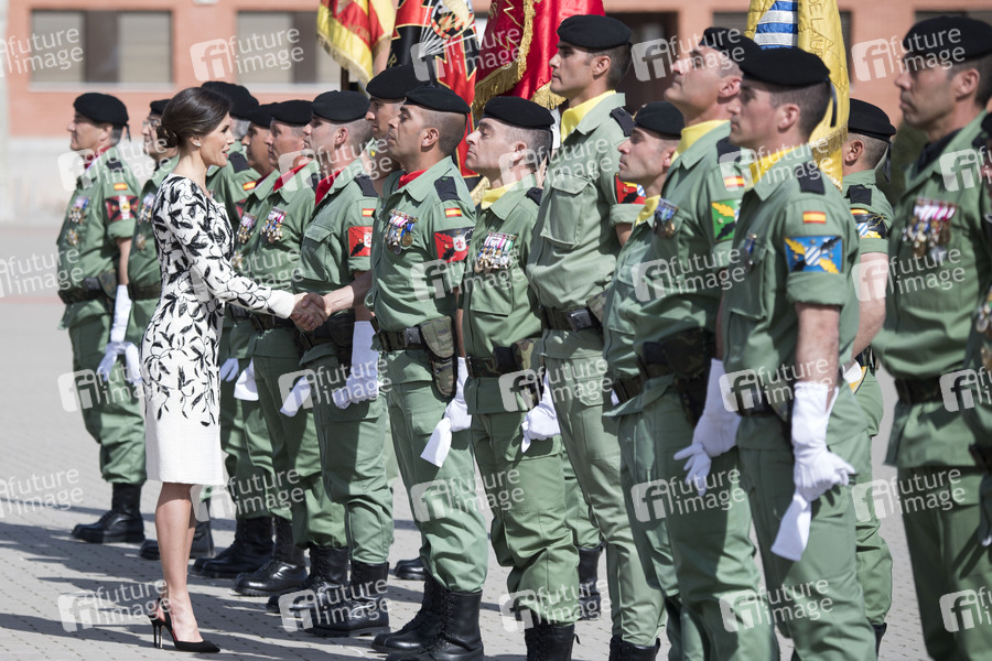 Königin Letizia von Spanien bei der Flaggenzeremonie der Fallschirmjägerbrigade Almogávares auf der Princip Base. Paracuellos de Jarama, 23.02.2019