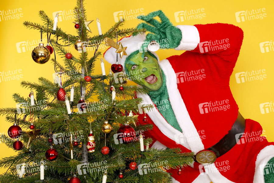 GEEK ART - Bodypainting meets SciFi, Fantasy and more: Christmas Photoshooting mit Enrico als Grinch im Fotostudio Schubert in Niedernwöhren - Ein Projekt des Fotografen Tschiponnique Skupin und des Bodypainters und Transformakers Enrico Lein