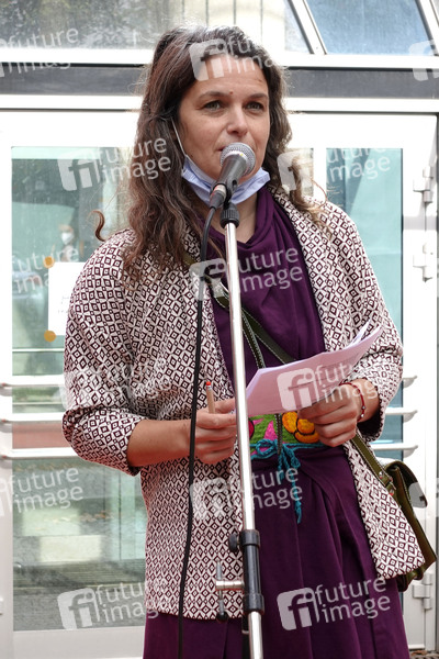 Linda Vierecke bei der Pressekonferenz zum Erhalt des Kino Colosseums im Foyer vom Kino Colosseum. Berlin, 21.09.2021