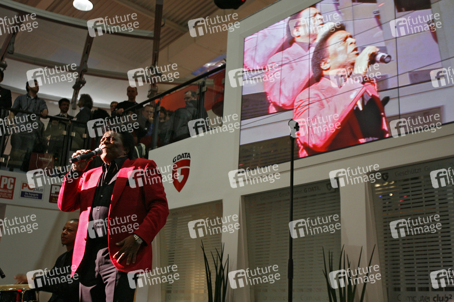 Auf der CeBIT 2008 (Centrum der Büro- und Informationstechnik), der weltgrößten Messe für Informations- und Computertechnik auf dem Messegelände in Hannover. Roberto Blanco live auf dem Stand der G DATA Software AG.