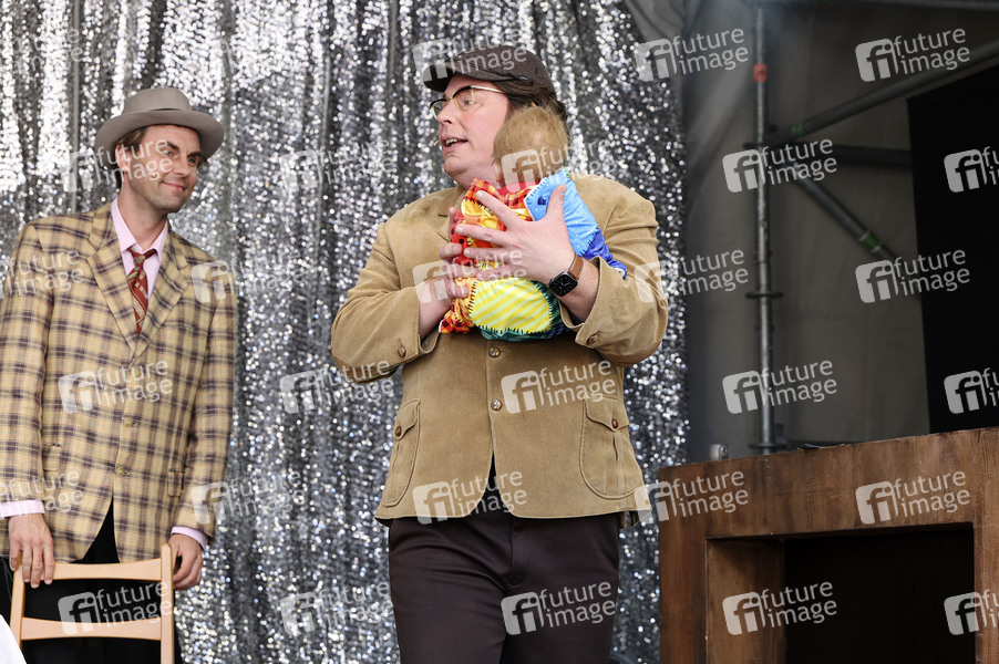 Daniel Tille als Benny und Michael Kuhn als Kjeld auf der Bühne des Boulevardtheater beim Stadtfest Dresden Canaletto 2025. Dresden, 17.08.2025