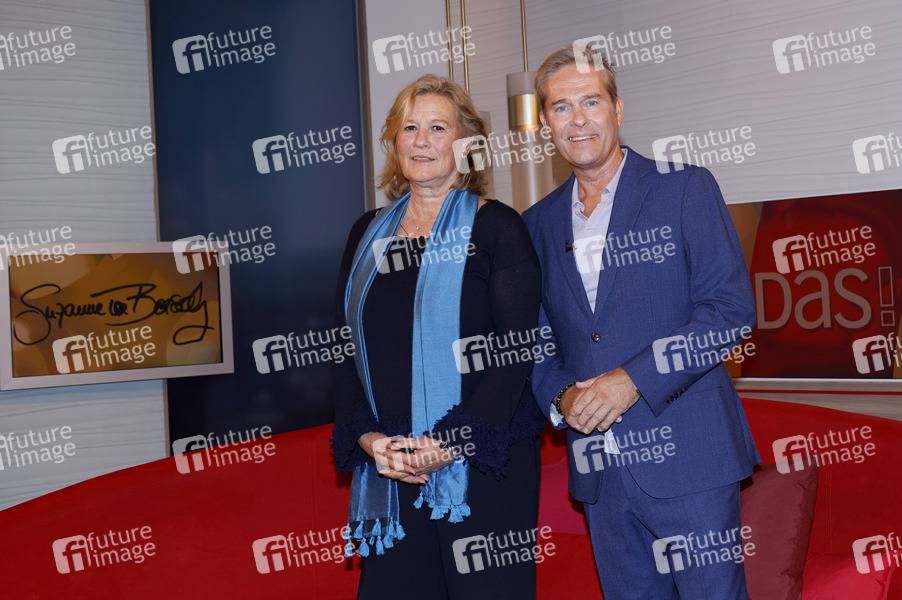Suzanne von Borsody und Hinnerk Baumgarten im NDR Nachrichten- und Talkmagazin 'Das!' im NDR Fernsehstudio Lokstedt. Hamburg, 11.04.2025