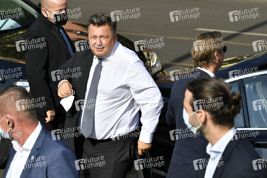 Andreas Geisel bei der zentralen Gedenkveranstaltung zum 60. Jahrestag des Mauerbaus auf dem Vorplatz der Kapelle der Versöhnung an der Gedenkstätte Berliner Mauer an der Bernauer Straße. Berlin, 13.08.2021