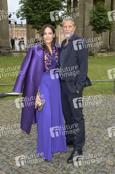 Bettina Zimmermann und Kai Wiesinger bei der Marc Cain Fashion Show 'Pure Radiance - Frühjahr/Sommer 2025' auf der Berlin Fashion Week S/S 2025 in der Kolonnade mit Triumphtor am Neuen Palais. Potsdam, 02.07.2024