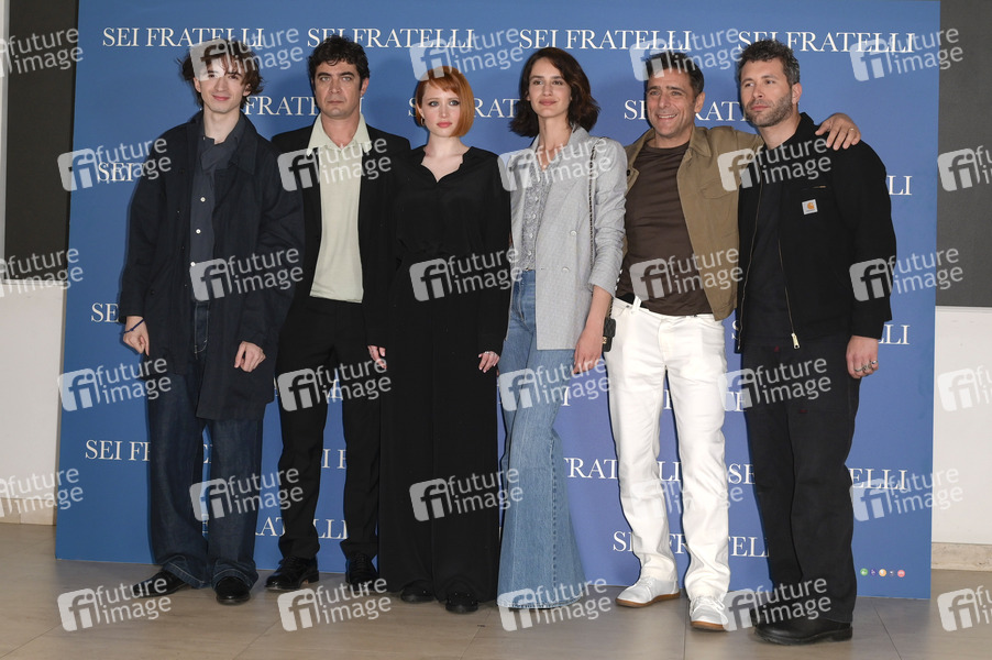 Mati Galey, Riccardo Scamarcio, Claire Romain, Valentina Belle, Adriano Giannini und Gabriel Montesi beim Photocall zum Kinofilm 'Sei Fratelli' im Cinema Barberini. Rom, 19.04.2024