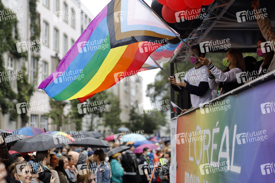 Etwa 10.000 Menschen waren auf der Christopher-Street-Day-Parade in Köln. Mit dem Marsch am Rhein sollte unter anderem für die Rechte von Schwulen, Lesben, Bisexuellen und Transgender demonstriert werden. Köln, 29.08.2021