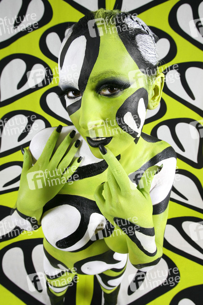 Bodypainting, Stoffdesign Anna Efverlund, Erotik, Frau, nackt, drinnen, weiblich, Muster, Chamäleon, erotic, woman, nude, indoor, female, chameleon