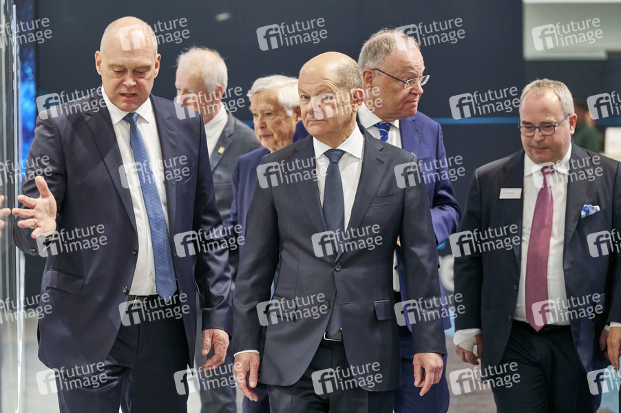 Deutsche Messe AG, Hannover Messe Industrie, Weltleitmesse der Industrie, Industriemesse, Industrieschau, Automatisierung, IT-Sicherheit, KI, Technologie, Wirtschaft, Ausstellung, Fair, Messe, Eröffnung, Opening, Leitmesse, Synergie und Kooperation, Wasserstoff & Brennstoffzellen, CO2-neutrale Produktion, Energizing a Sustainable Industry, Künstliche Intelligenz, Partnerland Kanada, Politiker, Bundeskanzler, Ministerpräsident von Niedersachsen