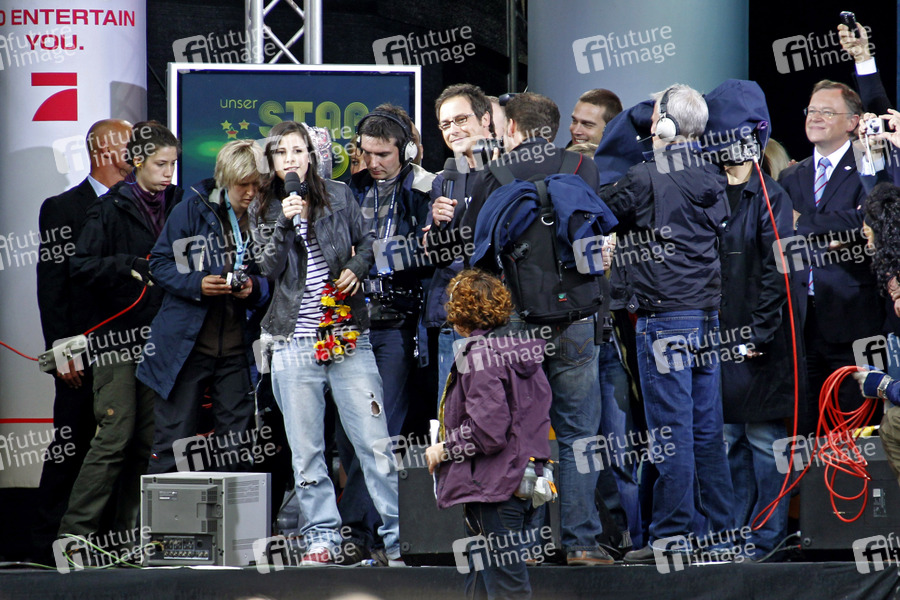 Nach ihrem Sieg beim Eurovision Song Contest in Oslo, wird Siegerin Lena in ihrer Heimatstadt Hannover auf dem Trammplatz vor dem Neuen Rathaus von 40000 Fans empfangen