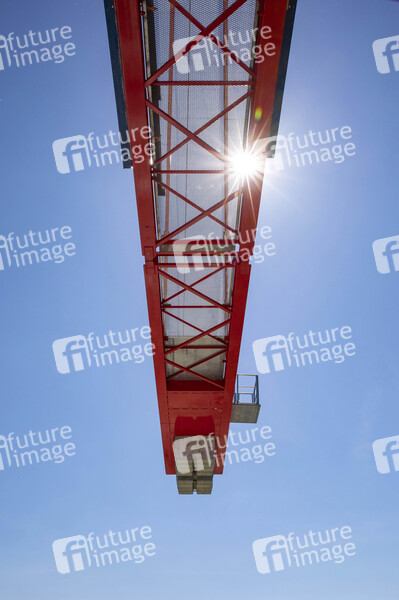 Kran, Turmkran, Turmkräne, Hebemaschine, Turmdrehkran, Obendreherkran, Krantechnik, Kranvermietung, Kranzubehör, Baukanhandel, Krananstrich, Kranfarbe, Baustelle, Hochbau, Hochbaukrane, Tiefbau, Fachwerkträger, Drehkranz, Vorderer Auslager, hinterer Ausleger, Katzausleger, Nadelausleger, Turmkrankonstruktion, Wolffkran, Baumaschinen, Baumaschienenhersteller, Kranhersteller, Turmspitze, Ballastgewicht, Gegenausleger, Traglast, Widerlager, Aufstellfläche, Bodenplatte, Betongewichte, Stahlrohrkonstruktion, Lastmoment, Krankomponenten, Fundamentanker, Turmabspannung, Innenkletterleiter, Kranfahrer, Kranführer, Krankanzel, Steuerkanzel, Wirtschaft, Bau, Symbolbild, Symbolfoto