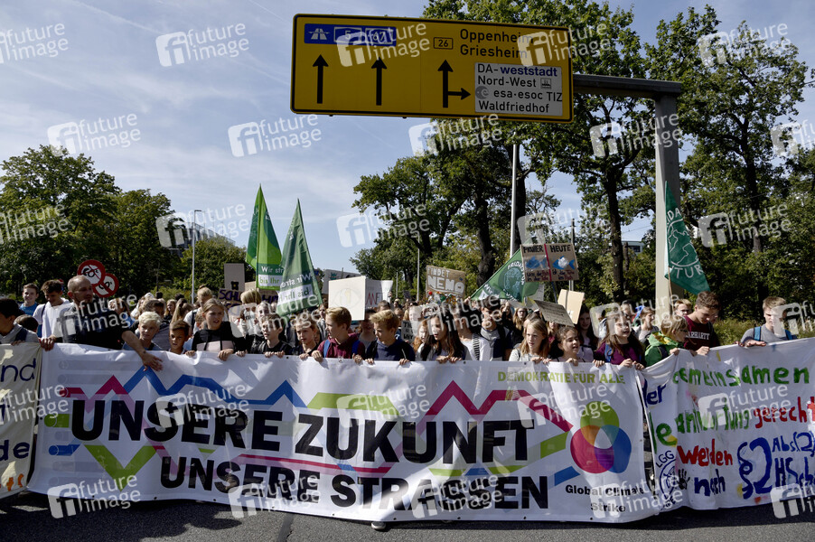 Demonstranten bei der 'Fridays for Future' Demonstration im Rahmen des weltweiten Klimastreiks. Darmstadt, 20.09.2019