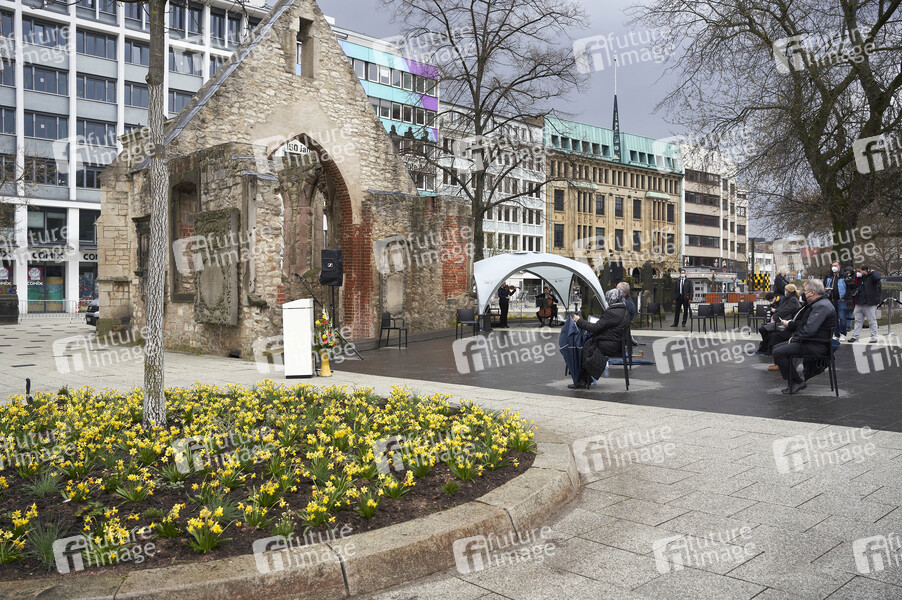 Gedenkzeremonie für die Verstorbenen in der Corona-Pandemie vor der Nikolaikapelle an der Goseriede. Hannover, 18.04.2021