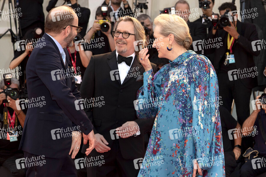 Steven Soderbergh, Gary Oldman und Meryl Streep bei der Premiere von 'The Laundromat / Die Geldwäscherei' auf der Biennale di Venezia 2019 / 76. Internationale Filmfestspiele von Venedig im Palazzo del Cinema. Venedig, 01.09.2019