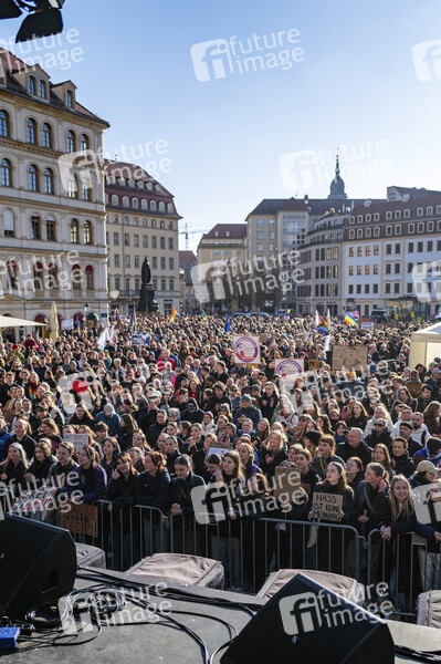 Demonstration unter dem Motto 'Wir sind die Brandmauer' gegen die AfD und den Rechtsruck auf dem Neumarkt. Dresden, 25.02.2024