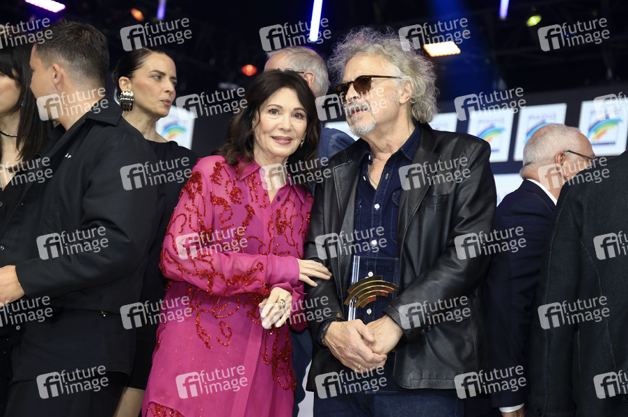 Iris Berben und Wolfgang Niedecken bei der Verleihung des 25. Radio Regenbogen Award 2025 in der Europa-Park Arena. Rust, 04.04.2025