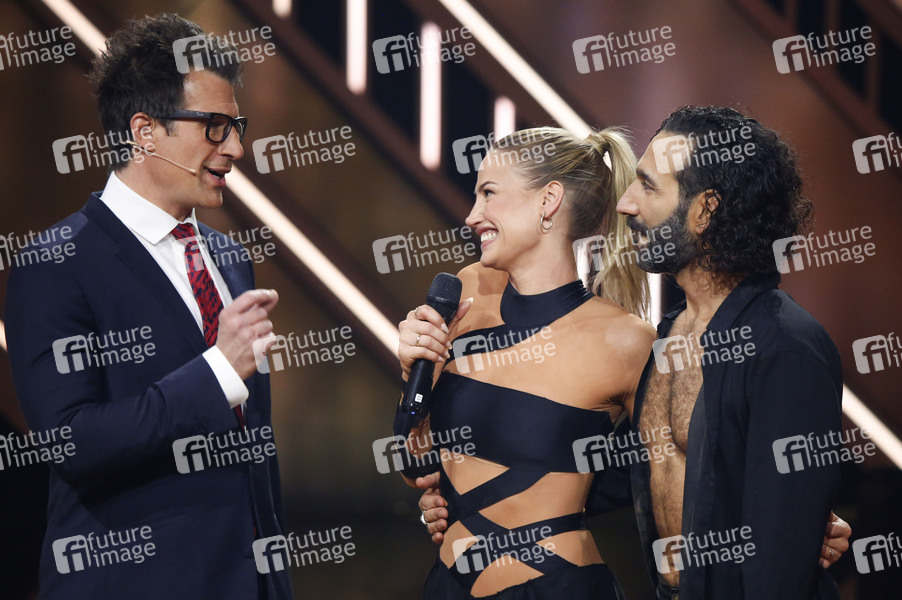 Daniel Hartwich, Lulu Lewe und Massimo Sinato in der achten Live-Show der 17. Staffel der RTL-Tanzshow 'Let's Dance' im MMC Coloneum. Köln, 26.04.2024