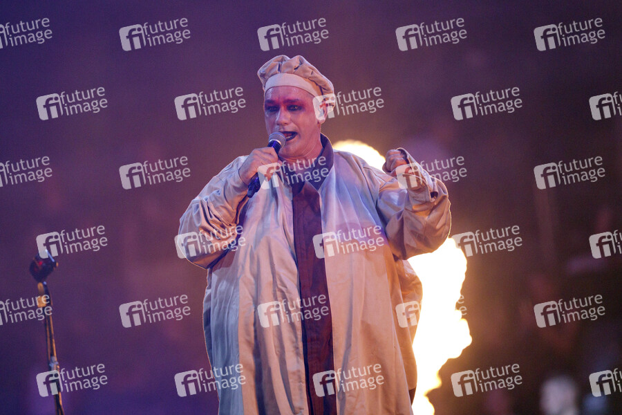 Rene Anlauff von der Rammstein Tribute Band Völkerball während des Konzerts im Rahmen von Arena Now! in der Lanxess-Arena. Köln, 06.08.2020