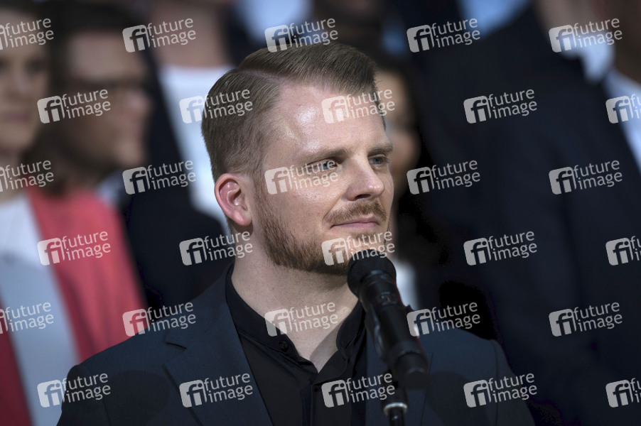 Tim Klüssendorf beim Pressestatement nach der Sondersitzung der SPD im Willy-Brandt-Haus. Berlin, 27.03.2026