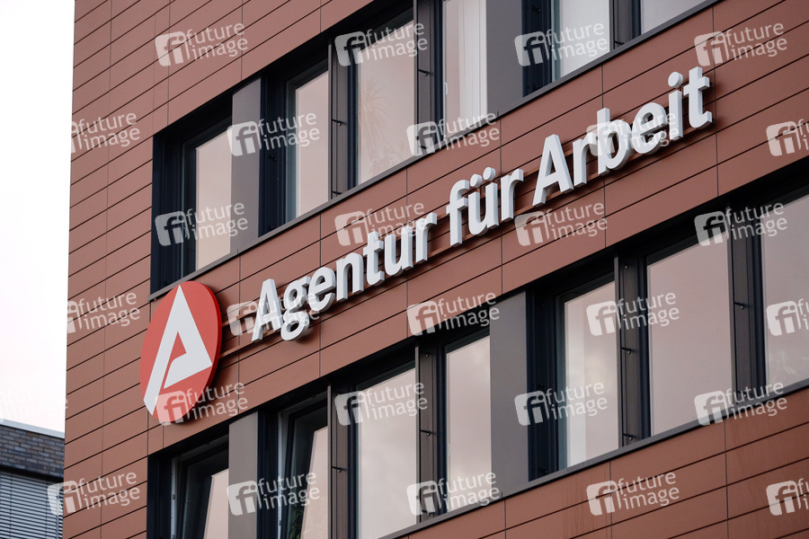 Arge-Logo an der Agentur für Arbeit in Ossendorf. Forscher befürchten aufgrund der Corona-Pandemie eine massive Steigerung der Kosten für Arbeitslosigkeit und deren Bekämpfung im Jahr 2022. (Themenbild, Symbolbild) Köln, 01.10.2021