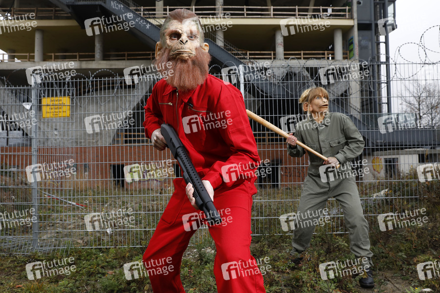 GEEK ART - Bodypainting meets SciFi, Fantasy and more: 'Planet der Affen' Photoshooting mit den Models Maria und Paul als Schimpansen auf dem Expo-Gelände. Hannover, 02.01.2019 - Ein Projekt des Fotografen Tschiponnique Skupin und des Bodypainters und Transformakers Enrico Lein