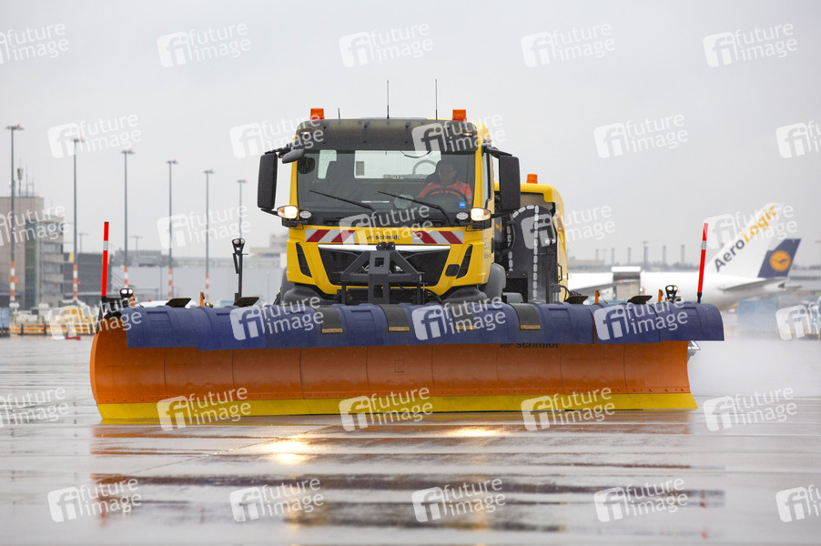 Winterdienst-Saison, Kehrblasgeräte, Schneeschild, Flächenenteisung, Landebahn, Startbahn, Lande- und Startbahn, Aviation, Flugzeuge, Winter, Eis, Schnee, Hightech-Fahrzeuge, Flotte, Sprühfahrzeug, Winterdienst-Container, Regen, Schlechtes Wetter, Minusgrade, Temperaturfall