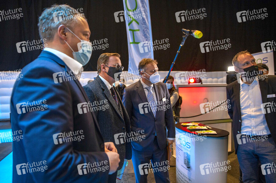 Politiker, Die Linke, Ministerpräsident von Thüringen, Ausstellung, Fair, Messe, Präsentation, Fachmesse und Konferenz für vorbeugende Corona-Schutzmaßnahmen, Corona, Sars-CoV-2, Covid-19, Coronavirus, Coronaviren, Corona-Virus, Coronakrise, Corona-Krise, Corona-Pandemie, Coronamaßnahmen, Corona-Schutz, Infektionsschutz, hybride Veranstaltung in Teil-Lockdown, Provention